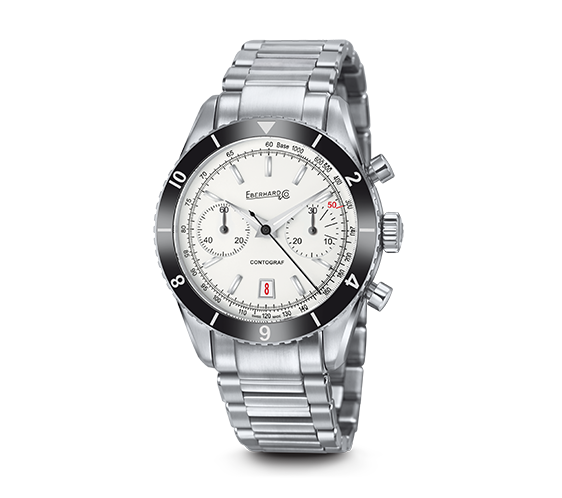 Contograf è un cronografo meccanico a carica automatica proposto come omaggio all’omonimo modello degli anni ’60, divenuto un emblema della propria epoca grazie alle sue caratteristiche assolutamente innovative. Il modello degli anni ’60 era infatti un cronografo di precisione dotato di due contatori, pulsanti impermeabili e di un grande datario a ore 6 con scatto rapido della data, decisamente rivoluzionario a quei tempi. La gran parte dei tratti originari è stata mantenuta nell’attuale riedizione ma non mancano dettagli inediti che rendono Contograf espressione del sapiente equilibrio tra la tradizione del proprio passato e l’ispirazione del futuro.