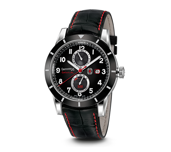 La collezione Tazio Nuvolari si arricchisce di un modello “solo tempo”, automatico dalla cassa in acciaio e dal look spiccatamente sportivo, proposto con quadrante nero con zona “perlée” sulla quale spiccano 12 numeri arabi luminescenti dal profilo rosso. La lunetta in acciaio è caratterizzata da un inserto circolare in acciaio trattato in PVD, con indici in rilievo. Impermeabile fino a 100 metri, il segnatempo ha un fondo serrato da 8 viti, con lavorazione “perlée”, personalizzato con l’incisione della firma del pilota. Il modello è disponibile con cinturino in alligatore nero ed impunture rosse o con bracciale “Charme” in acciaio.