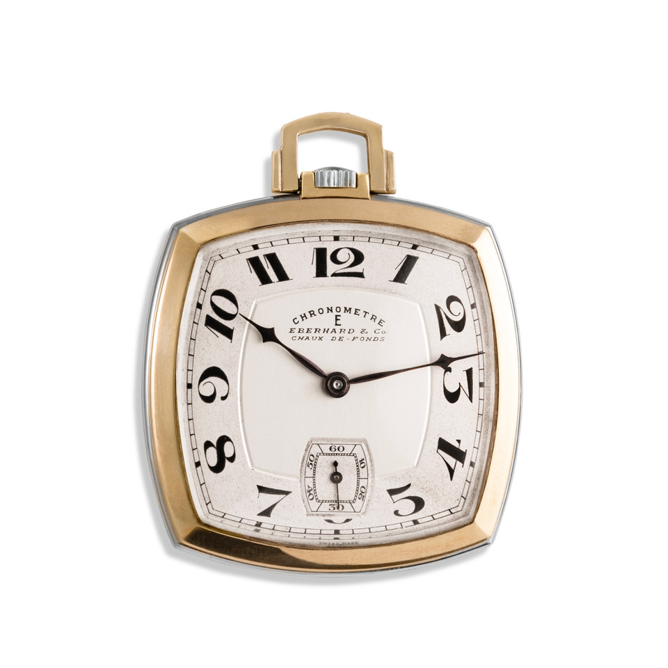 In occasione dell’11ª Biennale del Patrimonio Orologiero, manifestazione che celebra la ricca tradizione dell’orologeria svizzera, Eberhard & Co. ha svelato in anteprima ai visitatori l’ultimo orologio d’epoca acquisito dal Museo, aggiungendo così un ulteriore tassello alla ricca storia della Marca: un orologio da tasca con movimento meccanico a carica manuale risalente al 1930, caratterizzato da una particolarissima cassa carrè dalle forme morbide e bicolore, in oro giallo e grigio 18 kt.