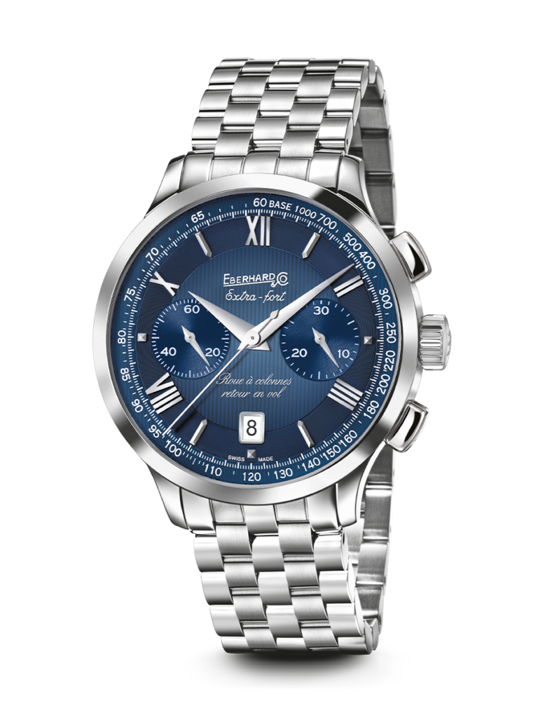 The renowned Extra-fort collection launched in 1940 is enriched by a new, exclusive evolution, combining two outstanding features: the column wheel and the fly-back function, which allows several times to be measured in rapid succession, still arousing the admiration of connoisseurs of the art of watchmaking.