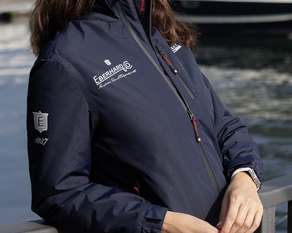 – Giacca blu in nylon a tre strati traspirante, idrorepellente e antivento