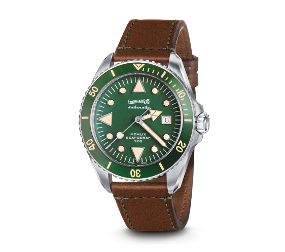 QUADRANTE VERDE CON FINITURA MATT, GALBÉ. INDICI APPLICATI, TONDI E DI FORMA TRIANGOLARE A ORE 6-9-12, CON LUMINESCENZA VINTAGE. FINESTRA DELLA DATA A ORE 3, DI FORMA RETTANGOLARE.